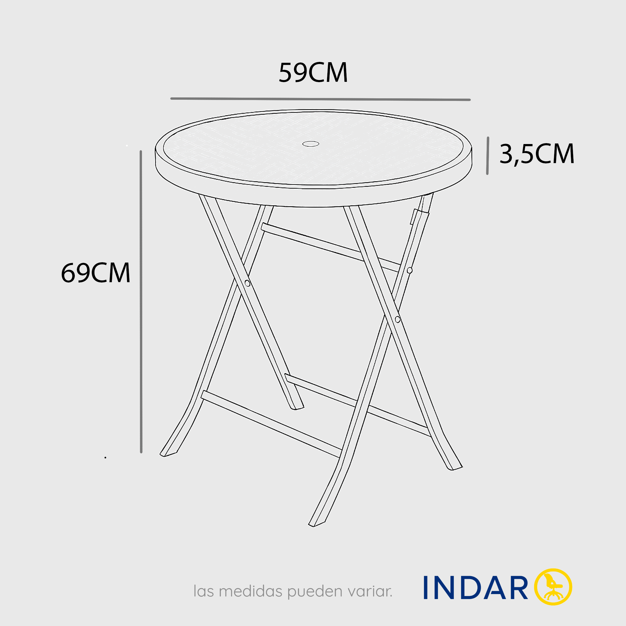 • 2 sillas plegables + 1 Mesa redodonda plegable