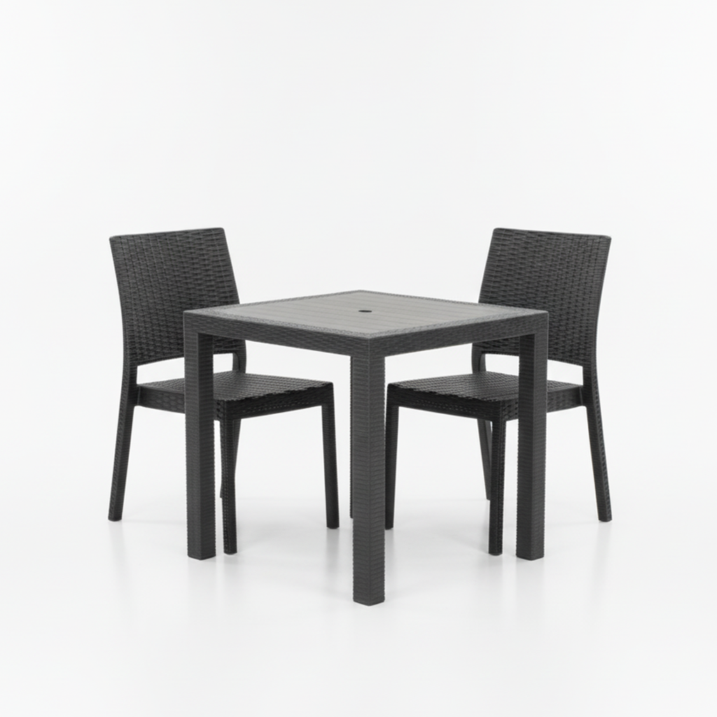 2 sillas rattan sin brazos + 1 Mesa cuadrada simil rattan