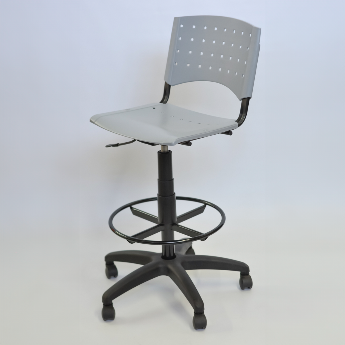 Respaldo y asiento de plástico inyectado de alto impacto, con textura antideslizante (varios colores).