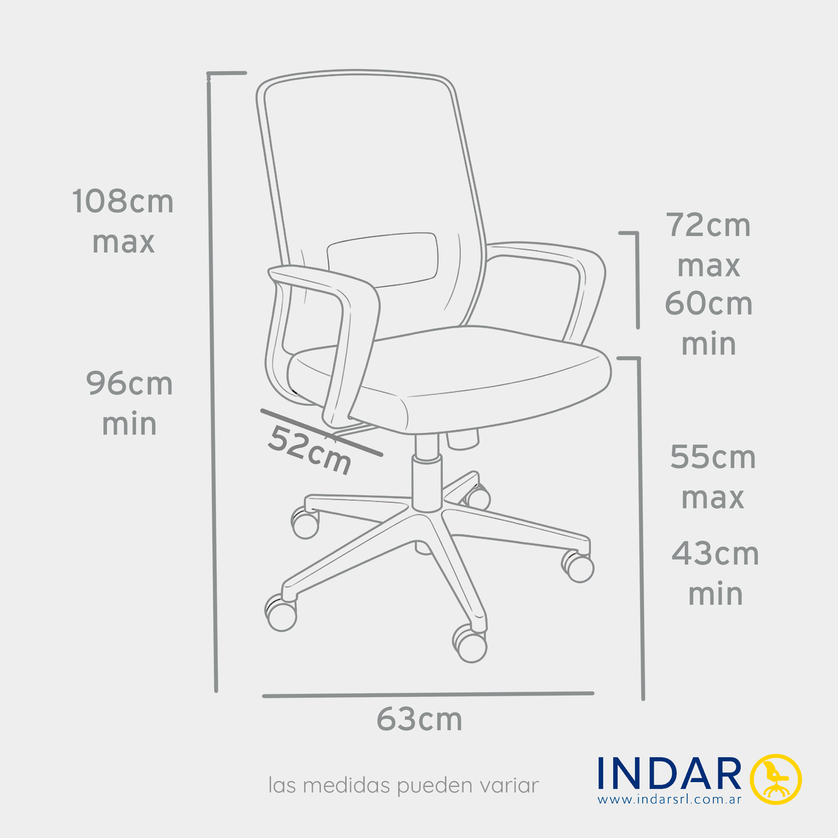 Respaldo tapizado en tela de red flex negra con apoyo lumbar.