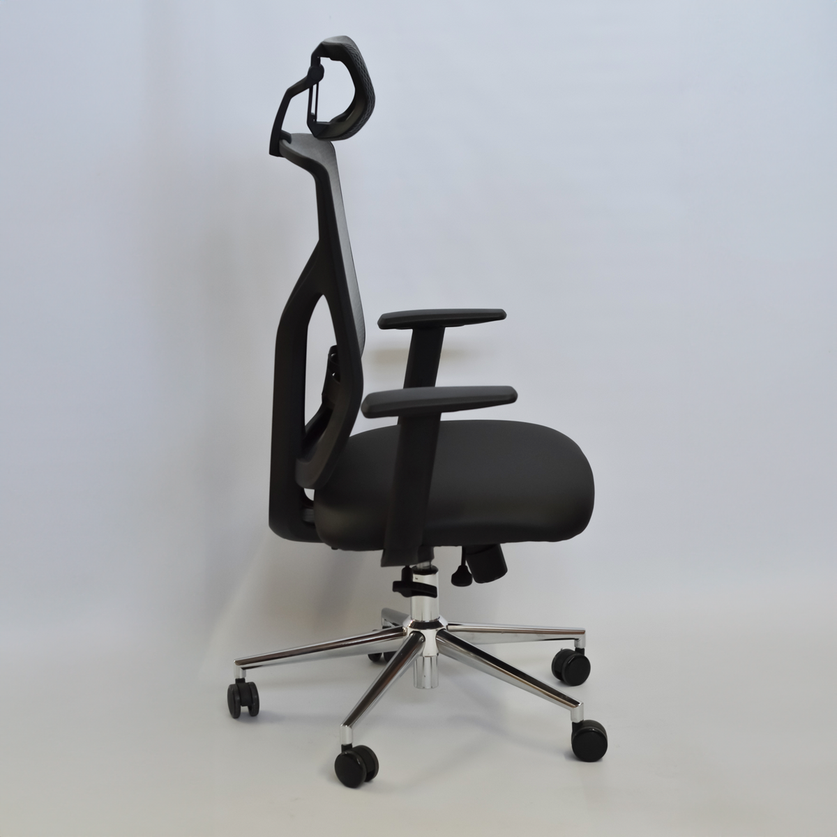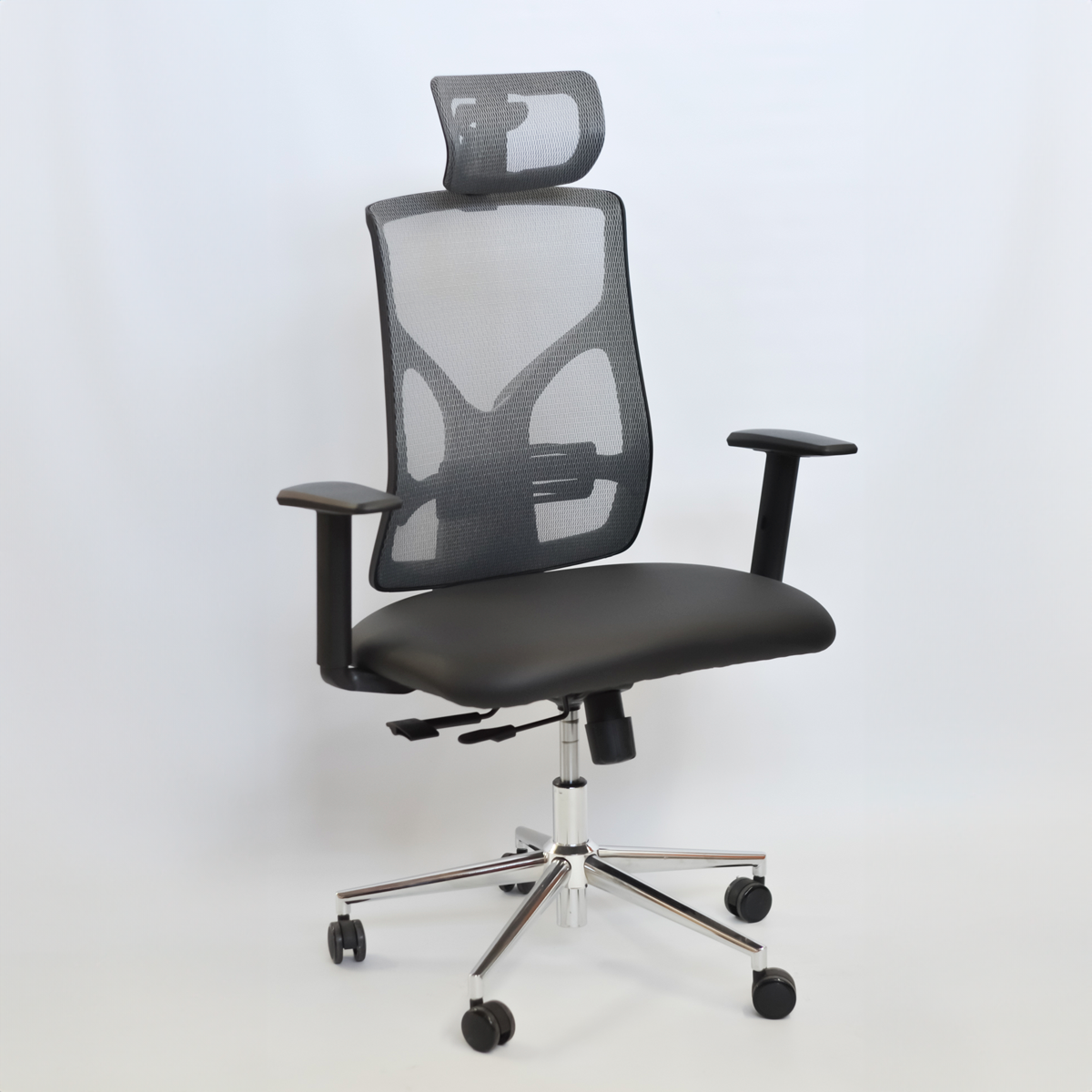 Cabezal tapizado en red, pivotante y regulable en altura.
